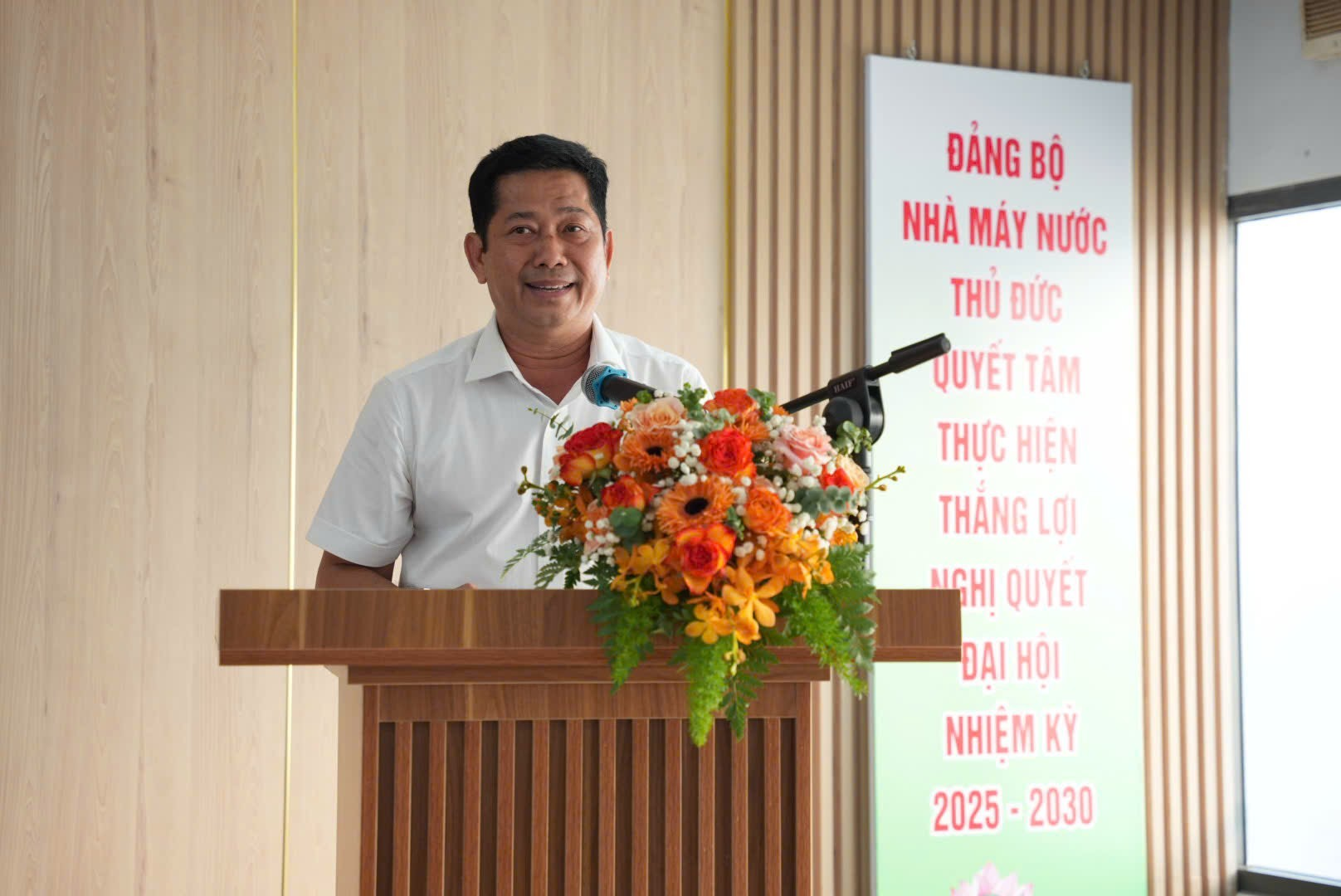 Ông Trần Thái Nguyên – Bí thư Đảng ủy, Giám đốc Nhà máy nước Thủ Đức phát biểu và tiếp thu chỉ đạo.